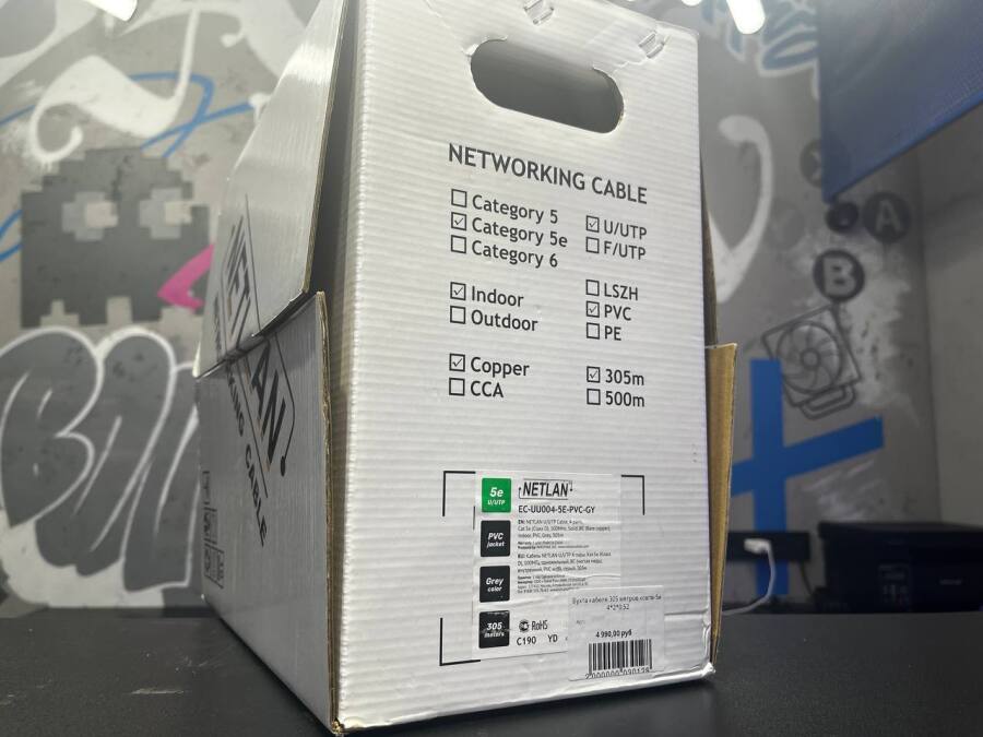 Четырехпарный кабель на основе витой пары, категории 5eприменяется для организации высокоскоростных кабельных сегментов со скоростью передачи данных до 1 Гбит/c. Также может быть использован для передачи аналоговой информации. Кабель UEC-UU004-5E-PVC-GY содержит 4 пары витых медных проводников, выполнен в неэкранированном исполнении, соответствует категории 5e и предназначен для внутренней прокладки. Поставляется в картонных коробках, по 305 м. Для удобства транспортировки и лучшей сохранности, две коробки с кабелем дополнительно объединены в одну общую транспортную картонную коробку.