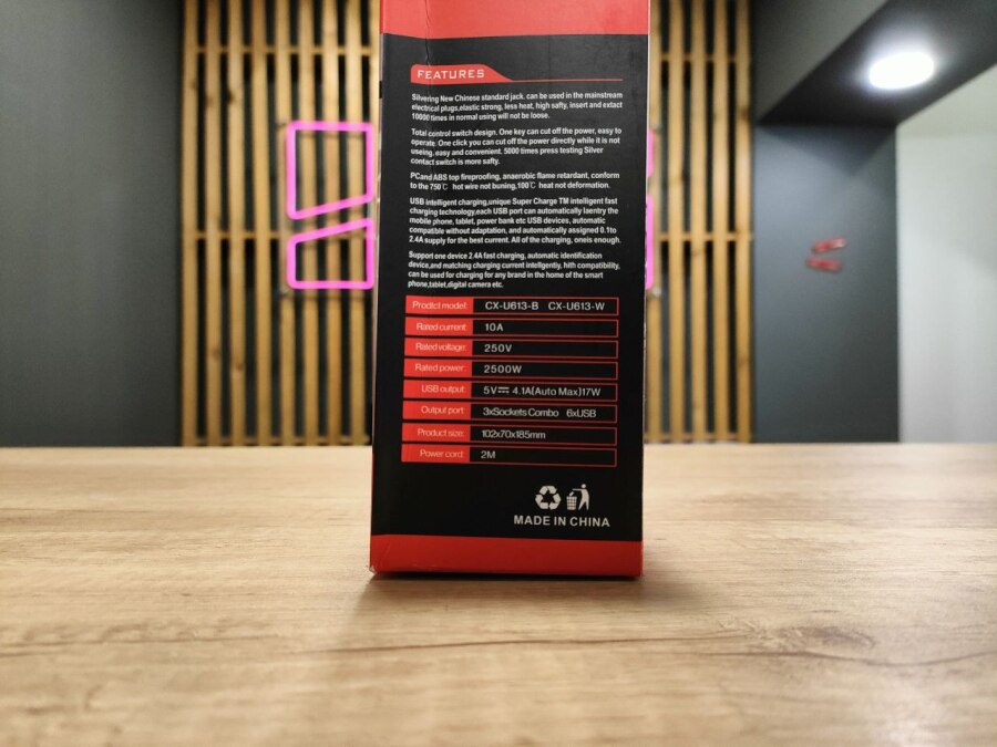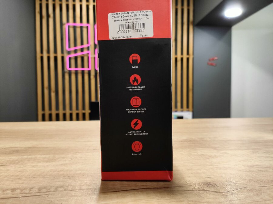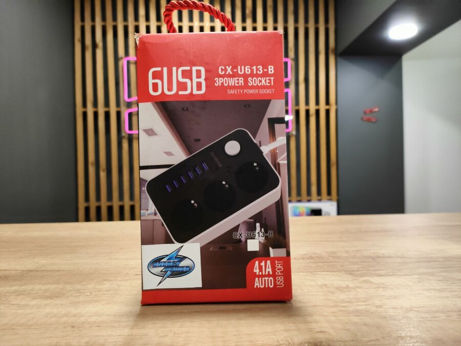 Сетевой фильтр CX-U613-В 2м 6USB с переключателем, заземление